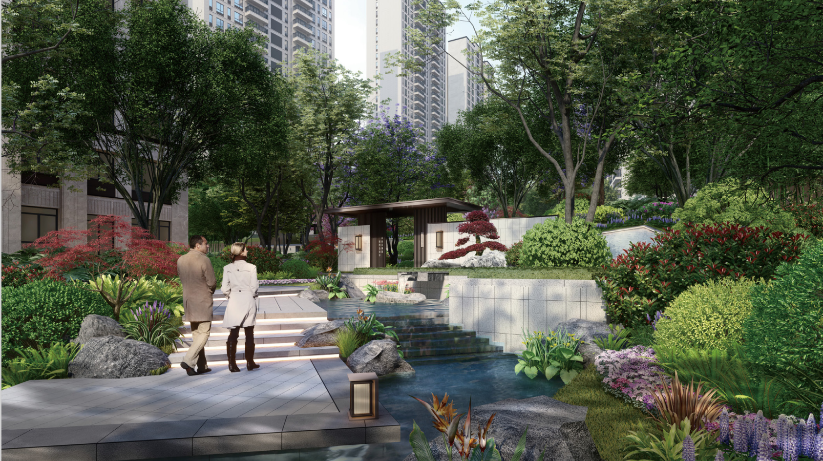 三重景:園林景觀也是年華小區(qū)最大亮點(diǎn),小區(qū)根據(jù)圍合式布局打造了近35000平園林景觀,整體規(guī)劃結(jié)構(gòu)結(jié)合坡地地形以臺(tái)地式分段式主題打造“人生三重景”。自東向西分為“臻美”、“悅動(dòng)”、“芳華”三重景。一境臻美,以翠谷清風(fēng)主題,以具有引導(dǎo)性的水景,以層層跌水營造歸家儀式感(水有聚財(cái)之意),利用高差與建筑圍合成類似山谷的空間,營造春意盎然的氛圍。