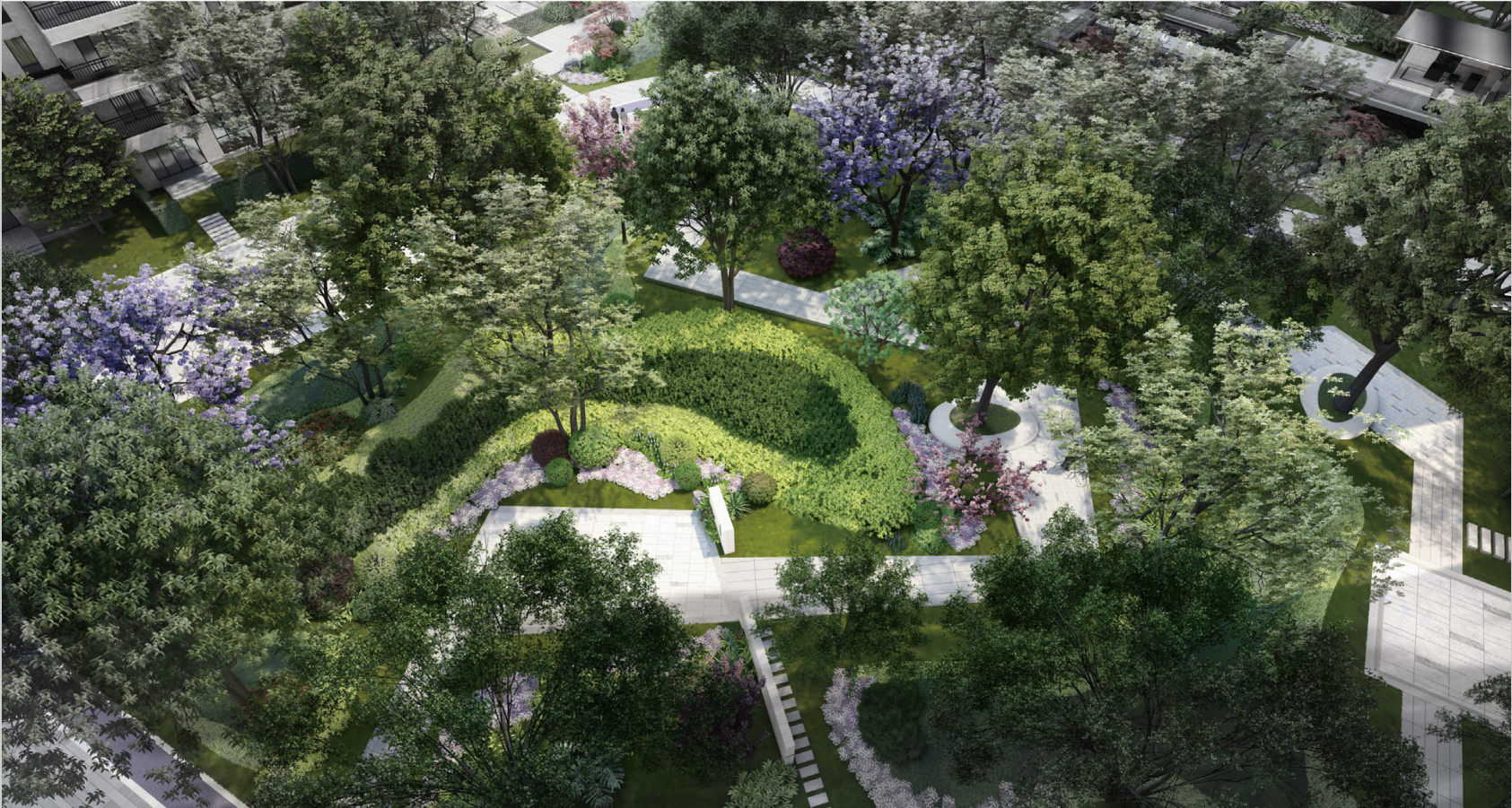二境悅動(dòng),依勢而建,拾級(jí)而上,搭配高低起伏的樹木,利用多變的景觀空間,打造繽紛花林主題花園。(喬木種類待補(bǔ))同時(shí)此區(qū)域北側(cè)為全年齡段運(yùn)動(dòng)空間,打造百米跑道、兒童游樂區(qū)。南側(cè)打造鄰里會(huì)客廳,供業(yè)主茶余飯后休息之用。